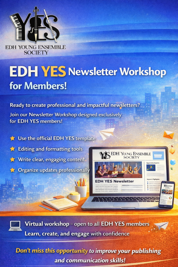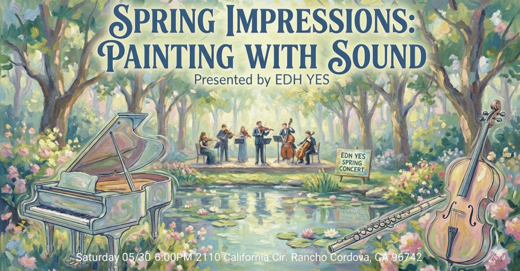EDH YES · A 501(c)(3) nonprofit bringing music, joy, and community connection year-round. Our mission is to help students grow as musicians by sharing their talents in meaningful ways. We provide opportunities for them to perform in senior centers, hospitals, schools, and community programs throughout El Dorado County and nearby areas. Through these experiences, students not only develop confidence and artistry, but also learn the importance of empathy, service, and community engagement. To make music education more accessible by developing and sharing AI-powered tools that assist young learners, learners with disabilities, language barriers, or limited resources. We bring music to places where it can provide comfort, inspiration, and joy, such as senior living communities, hospitals, and local schools.